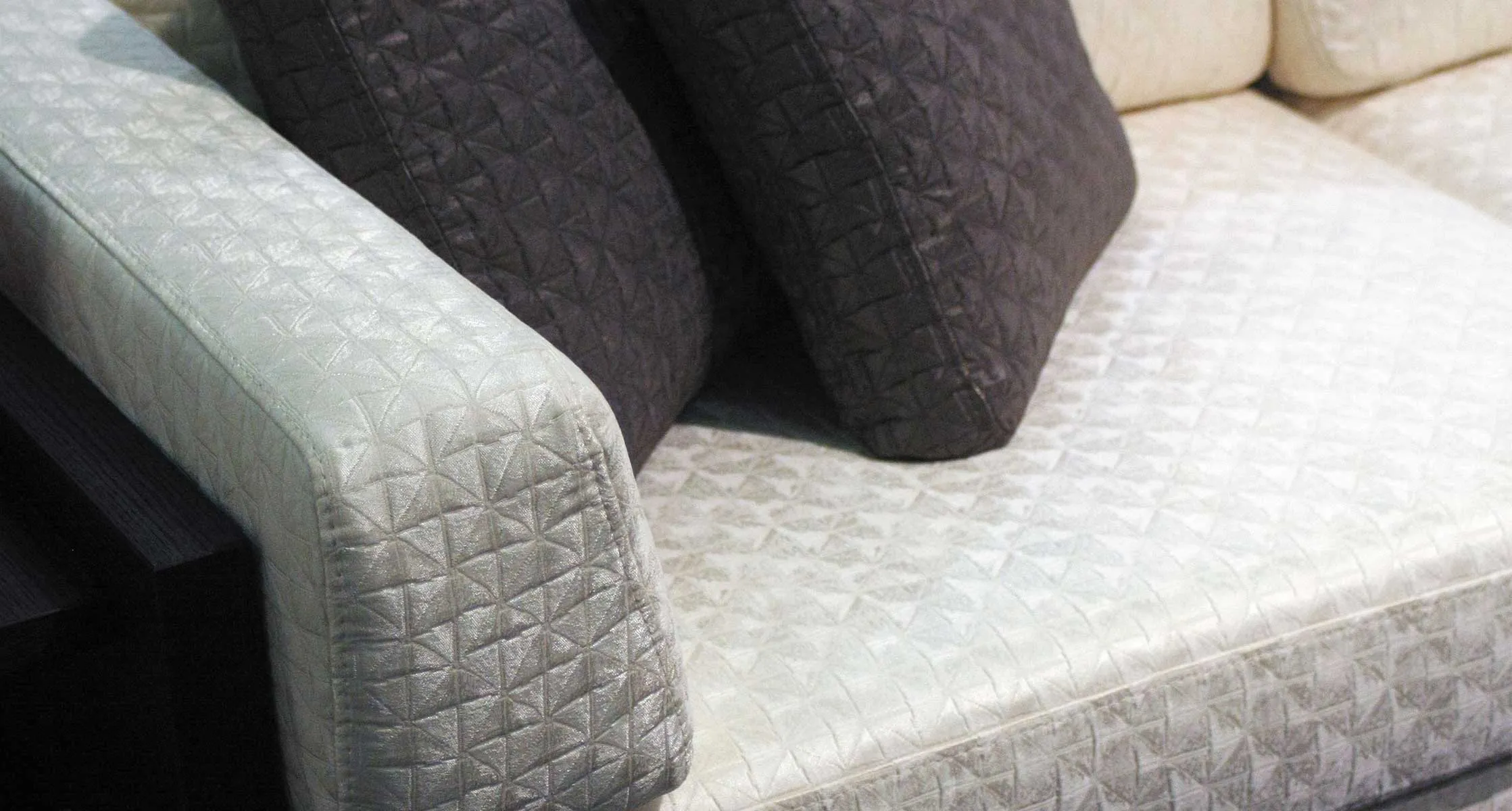 Стеганая фактура ткани придает дополнительный объем дивану, делает его более уютным. Благородный блеск материала добавит элегантности и оригинальности вашему интерьеру.