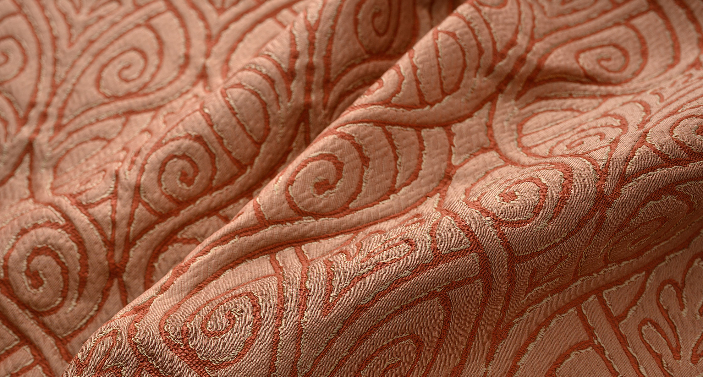 В необычном дизайне коллекции Tessuto Springtime угадывается и классический вензель, и этнические мотивы, которые так популярны среди дизайнеров. Благодаря блестящей нити в ткани, жаккард Tessuto Springtime напоминает дорогую парчу и будет выглядеть неотразимо на любом диване.